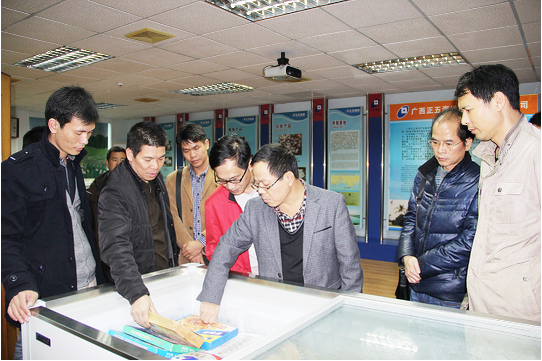 2015年防城港市科技局副局長許炳杰率隊在北海考察期間,于3月10日來到正五海產公司考察國家級高新技術企業建設的經驗和做法。北海市科技局副局長周國福等陪同。