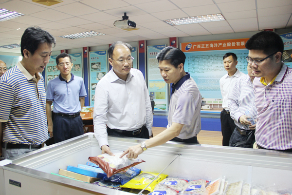 2016年4月13日,北海市副市長曾子祥來到正五海產公司調研,了解企業當前生產經營情況,幫助解決問題。高新區管委會主任李光劭等陪同調研。