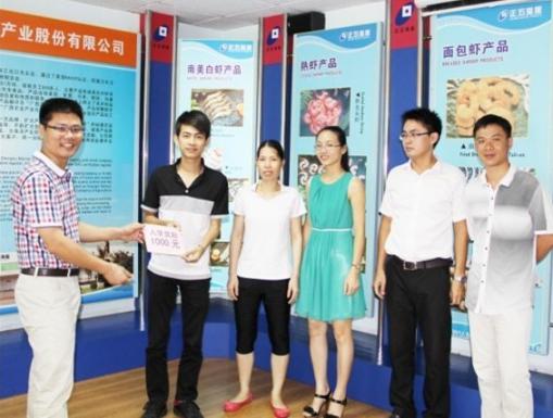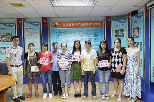 2014823日正五海產公司召開獎勵座談會,對在2014年高考中取得優異成績4名員工子女按照《職工子女考上大學本科入學獎勵辦法》進行了獎勵。