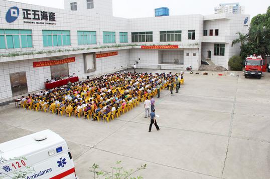 2014411日正五海產公司2014年全體員工消防安全培訓及演練成功舉辦。廣西北海高新技術產業園區管委會、北海市衛生局、北海市安監局和園區內的近20家企業的代表專程來到演練現場進行了觀摩。